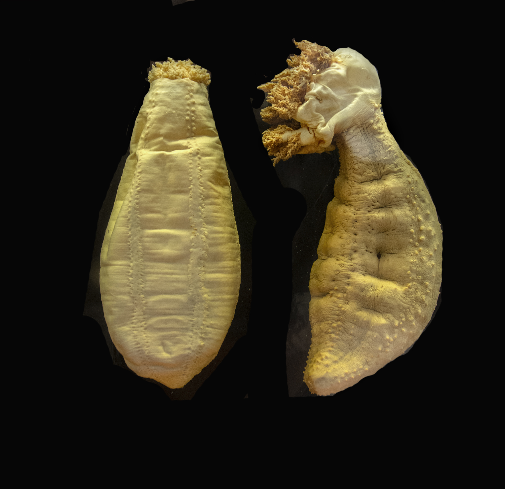Sjögurkor är avlånga, som gurkor alltså, och lever på havsbottnar. Där äter de dött material som ligger och skräpar, lite som havens dammsugare.